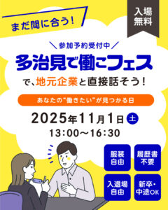Post Share Hatena Pocket RSS feedly Pin it この記事のタイトルとURLをコピーする 弊社ホームページをご覧いただき、ありがとうございます。 2025年11月1日(土)開催多治見で働こフェスに、ブースを出展いたします。 弊社の仕事内容を聞いてみたい方 会社の雰囲気を知りたい方 是非、ご来場ください。 お待ちしております。 Post Share Hatena Pocket RSS feedly Pin it この記事のタイトルとURLをコピーする 10月26日開催〖多治見で働こフェス〗に参加します! 前の記事